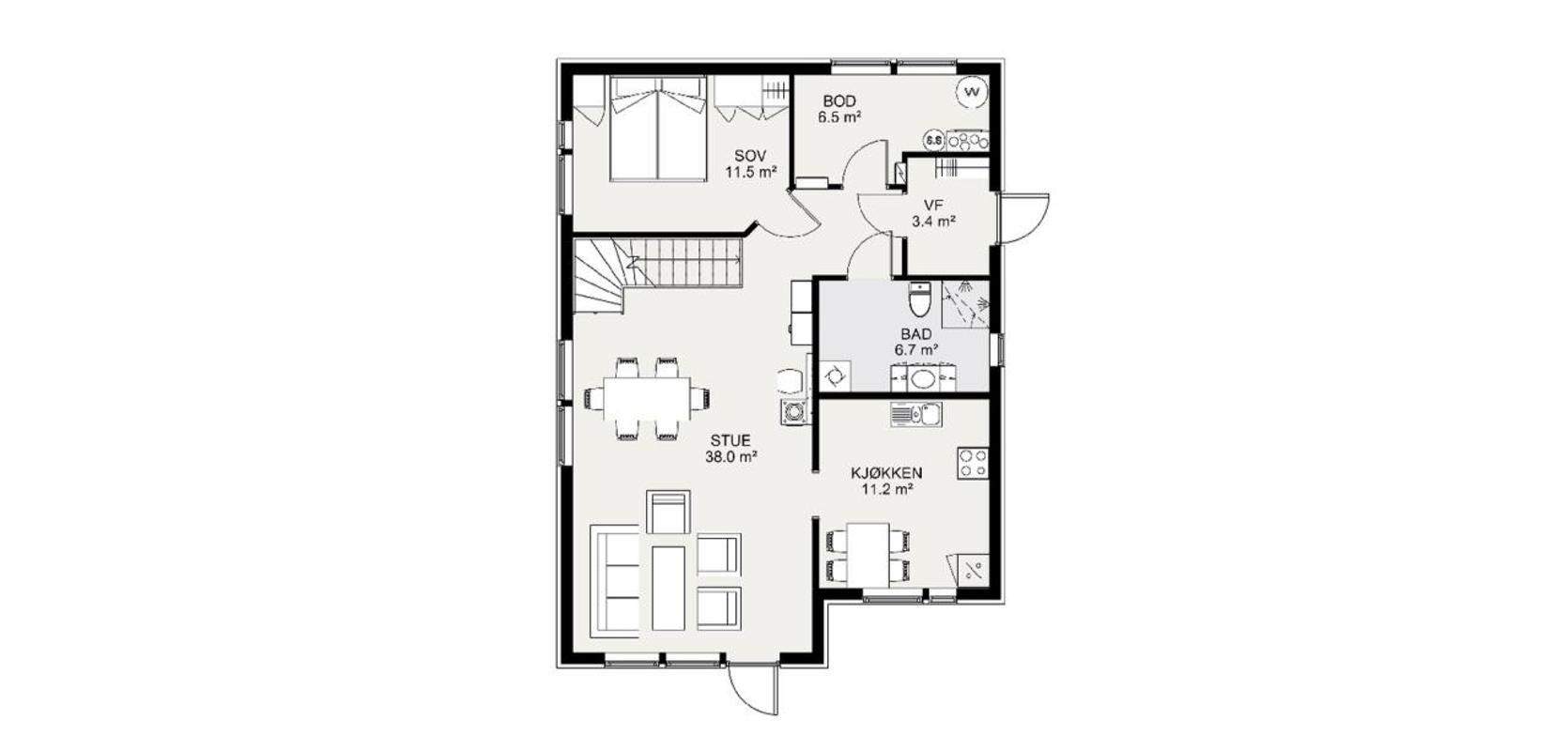 Loftsetasjen har to store soverom og en romslig bod som gir deg god lagringsplass. Huset har også flere boder som gir deg ekstra oppbevaringsmuligheter. Hvis du ønsker, kan du innrede den ene boden til et stort og flott bad.