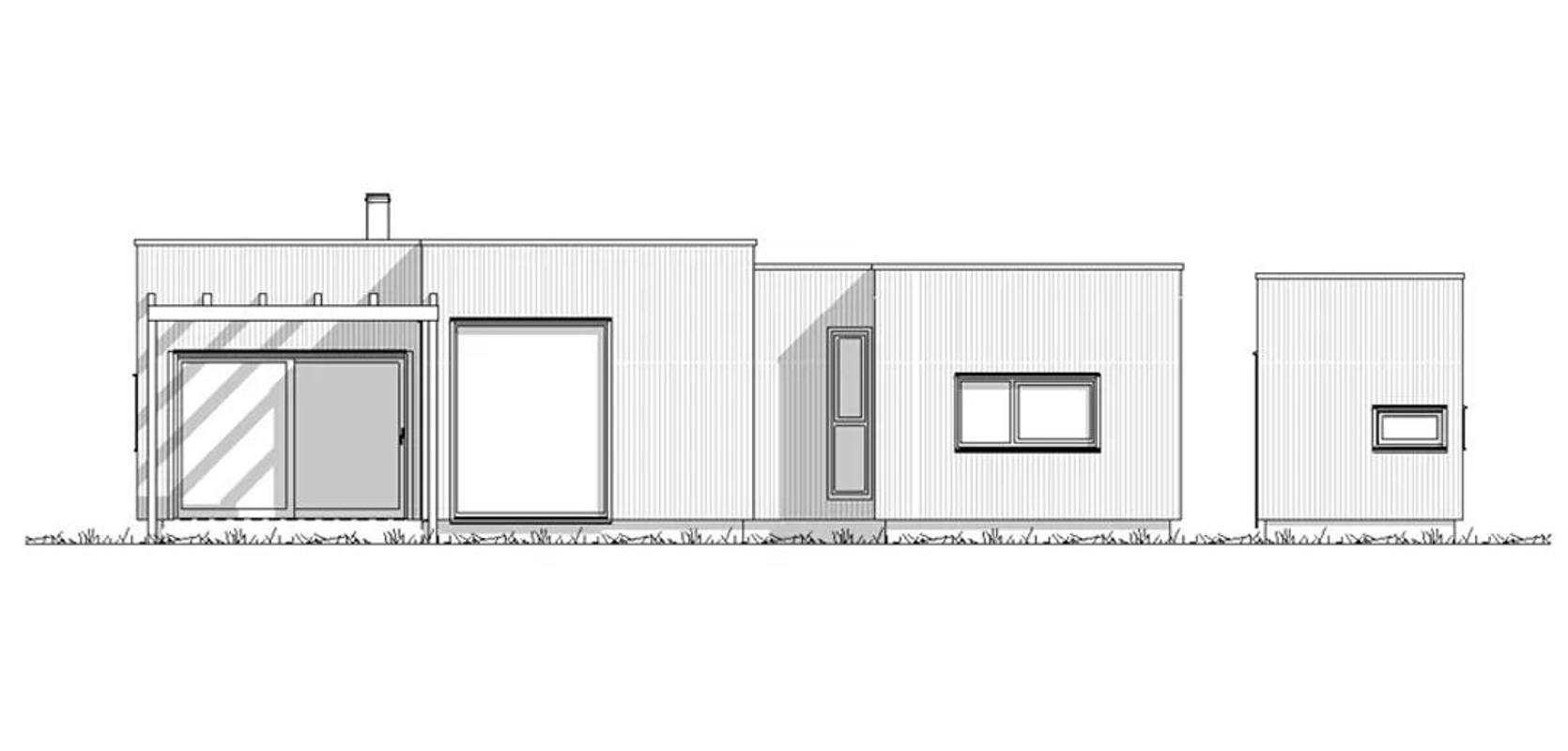 Funkishytta er utstyrt med store vinduer som gir rikelig med naturlig lys, og når hytta er plassert på en vakker tomt, fungerer vinduene som et levende maleri.