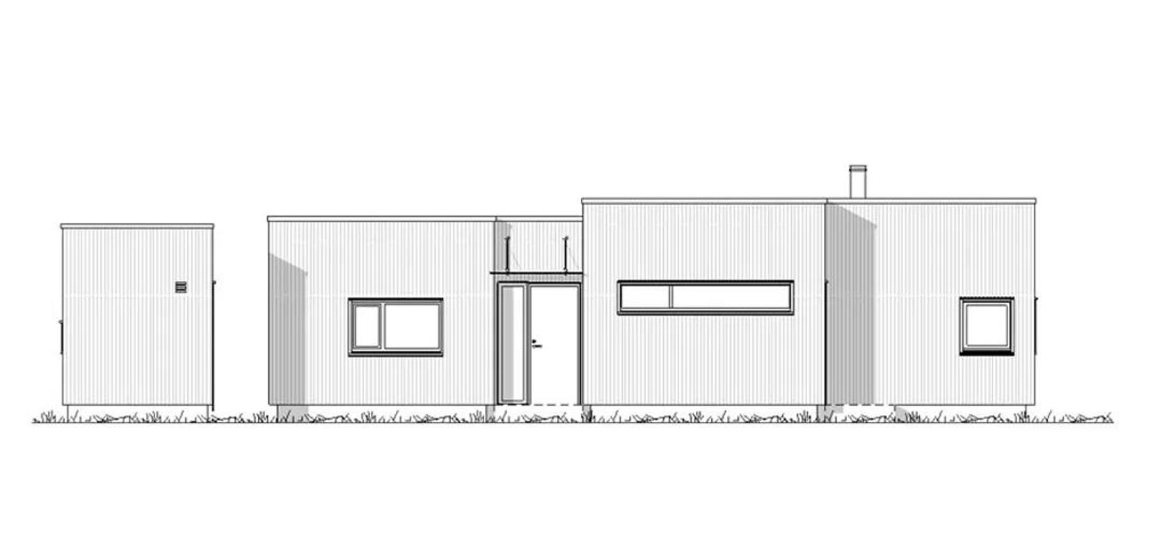 Funkishytta har en svært praktisk og åpen stue- og kjøkkenløsning. Her er det god plass til en kjøkkenøy og ikke minst en romslig spiseplass. Kjøkkenet har også en egen utgang til utendørsområdet i vest og nyter godt av rikelig naturlig lys som strømmer inn over arbeidsbenken i nord.